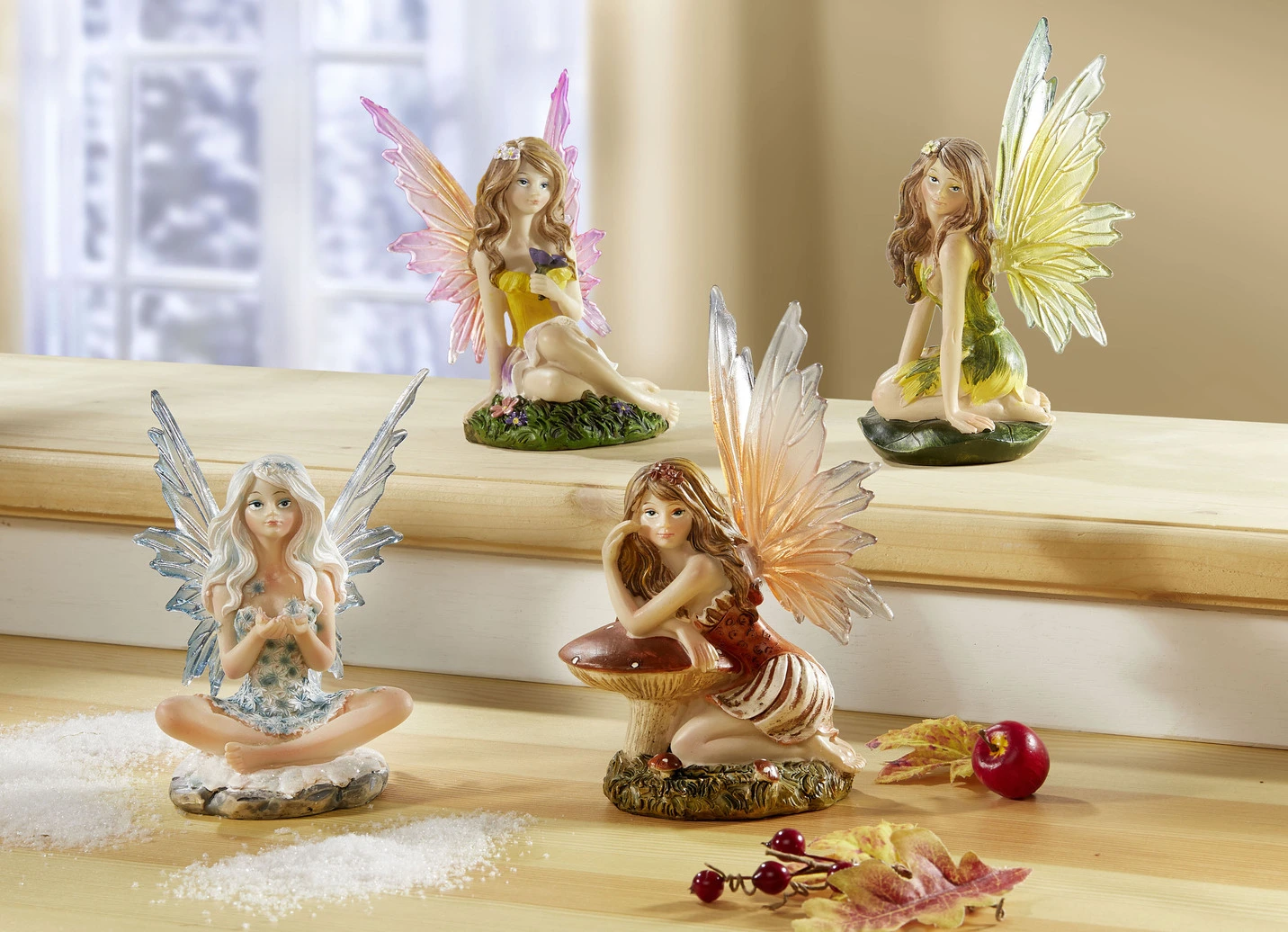 Zauberhafte Begleiterinnen durch die vier Jahreszeiten! Mit diesen eleganten Deko-Feen schaffen Sie eine tolle Atmosphäre in Ihren Wohnräumen. Die filigranen Flügel lassen sich um Nu am Rücken feststecken. Liebevoll aus Polyresin gefertigt und bemalt.