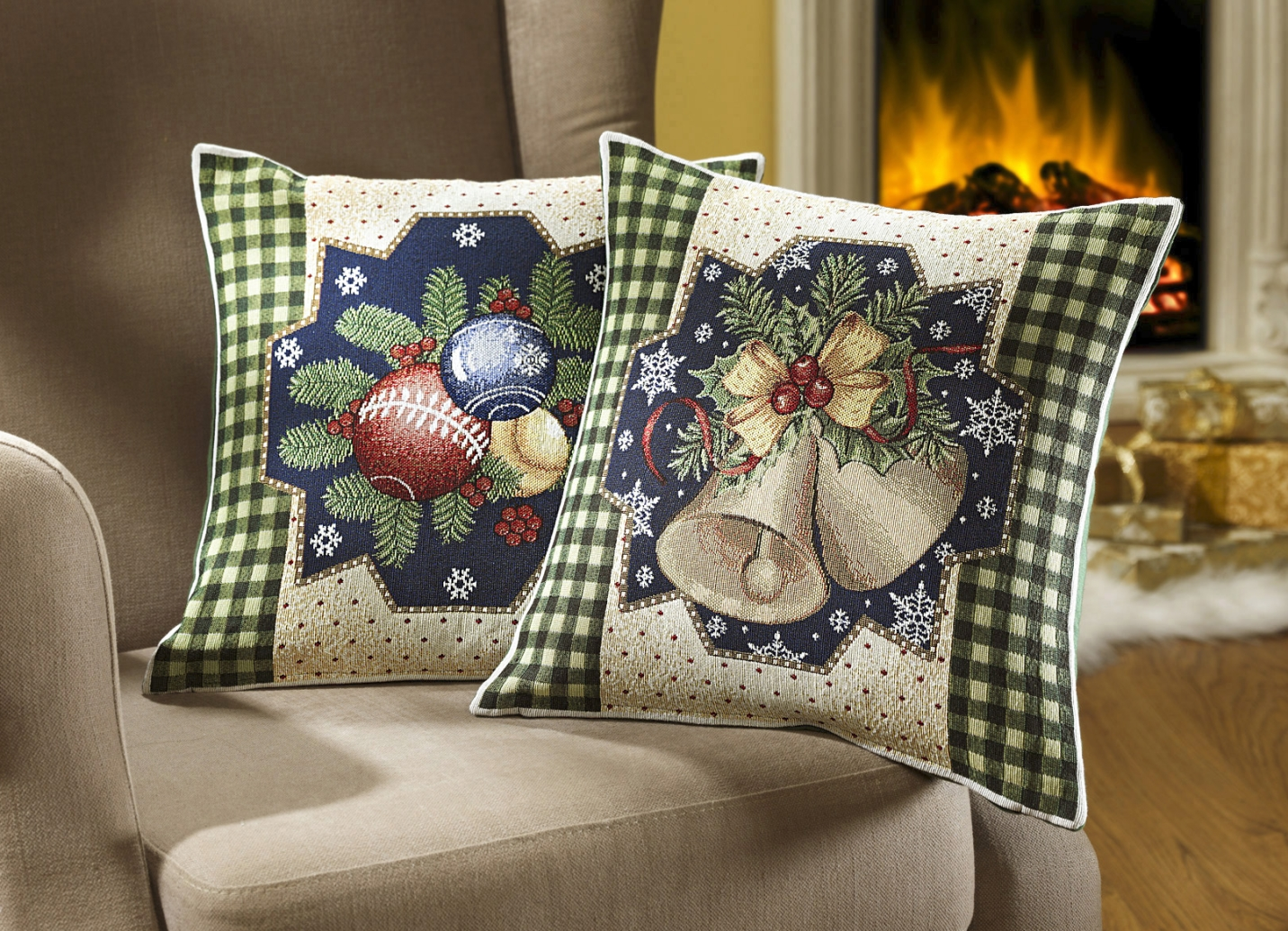 Setzen Sie weihnachtliche Blickpunkte – mit diesen festlichen Kissenbezügen, die mit Glocken- und Kugelmotiven gestaltet und mit praktischem Reißverschluss ausgestattet sind.