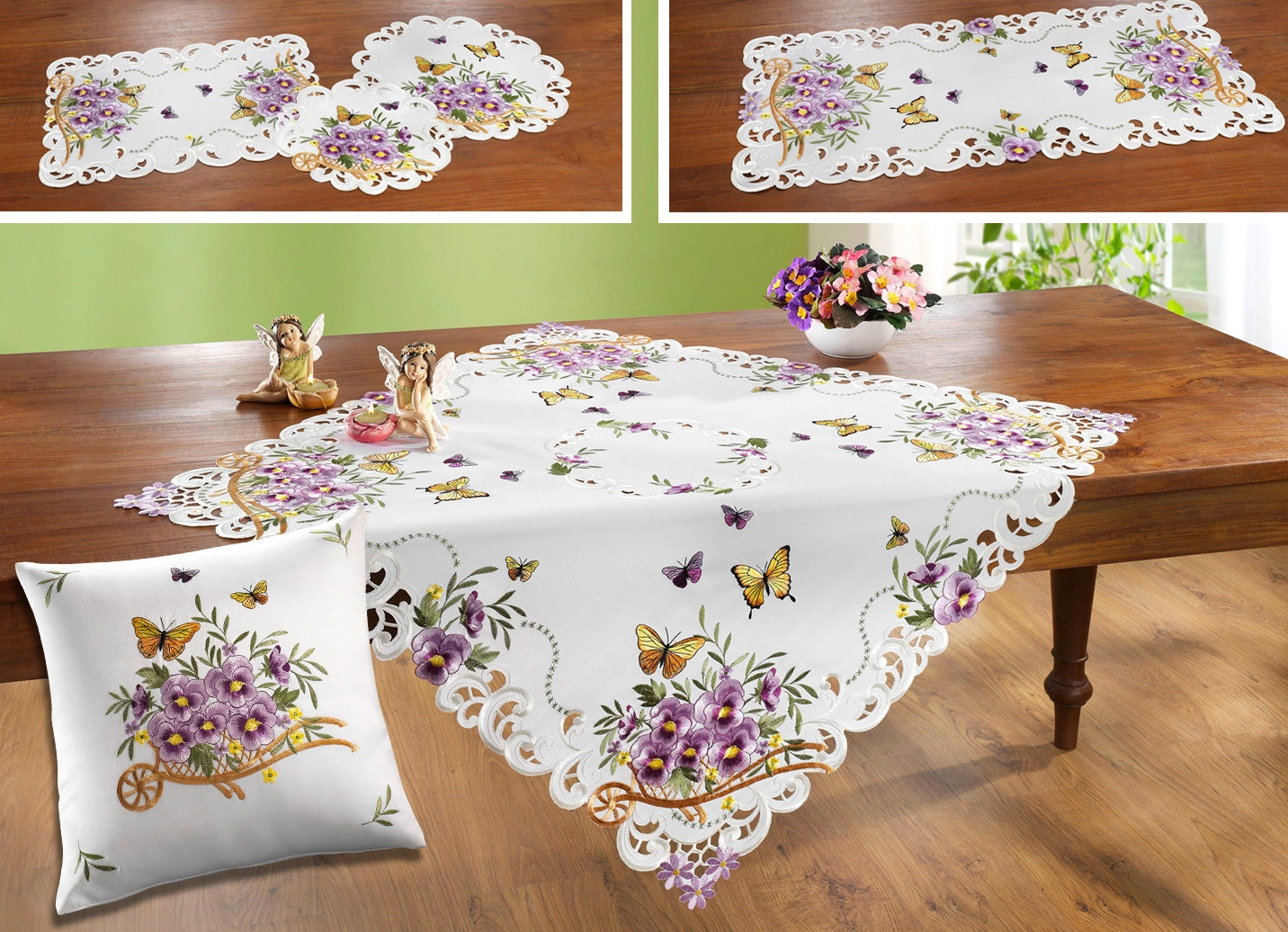 Frühlingshafte Tisch- und Raumdekoration in Größe 102 (Läufer, 40/ 85 cm) und in Weiss.