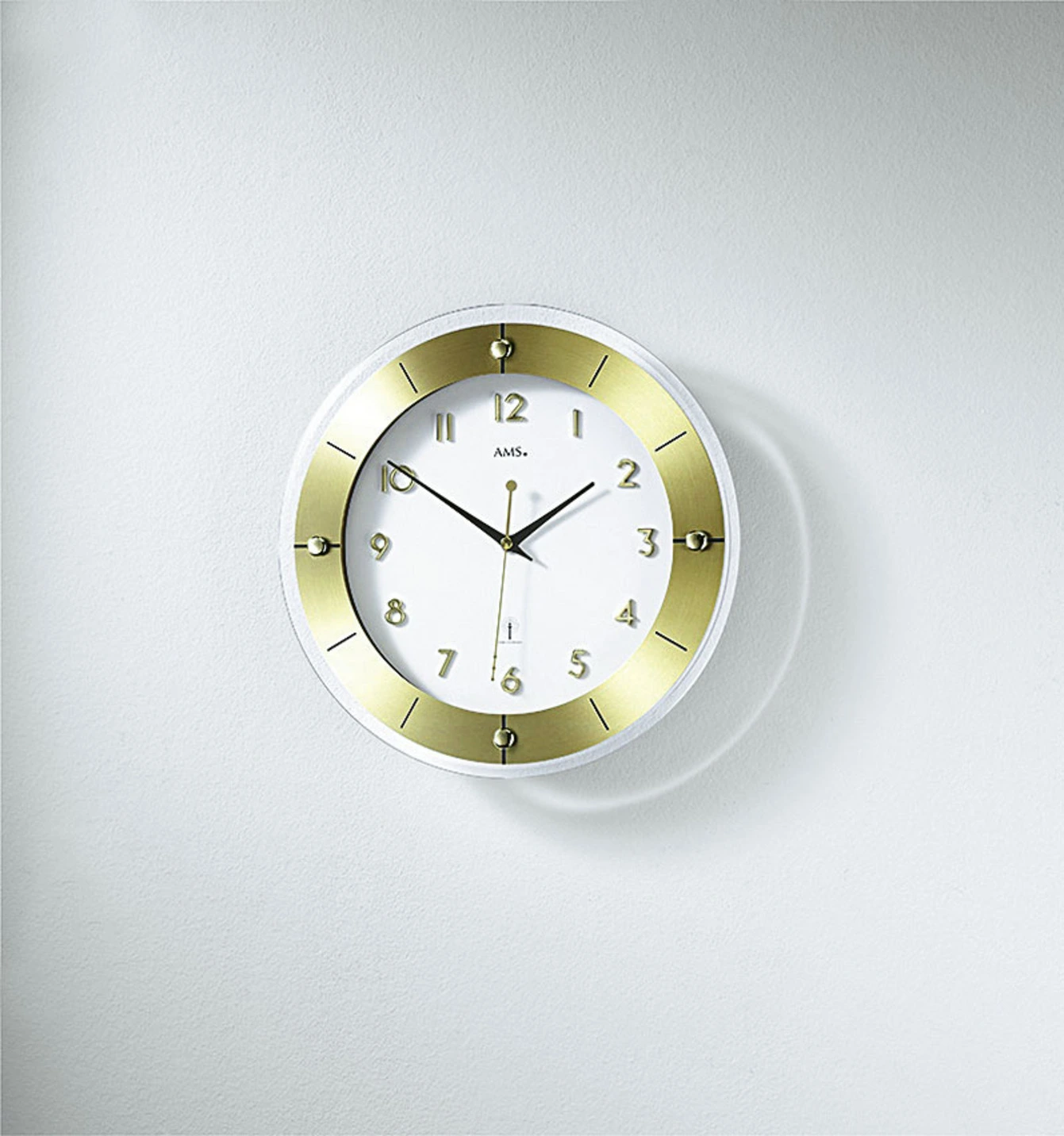 Hochwertige Wanduhr von AMS, aus facettiertem Mineralglas