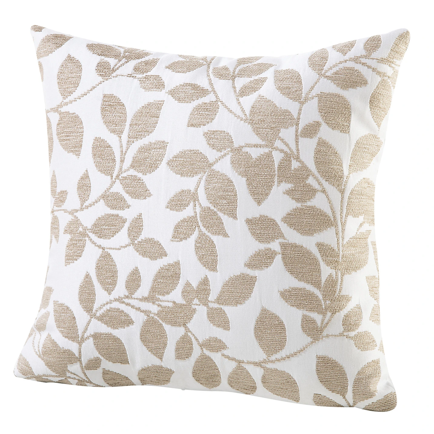 Kissenbezug mit hübschem Blättermotiv in Größe 905 (Kissenbezug, 38×38 cm) und in Weiss-Gold.