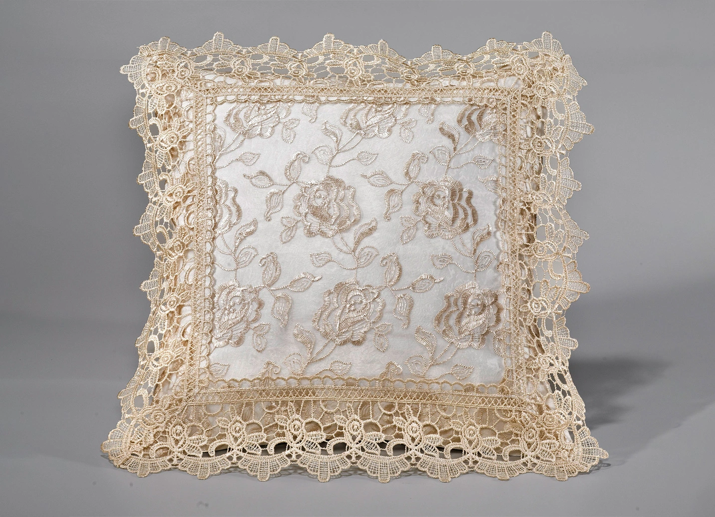 Diese herrlichen Wohnaccessoires mit filigran gearbeiteter Rosen-Stickerei und hübscher Macramé-Spitzenbordüre aus dem Hause Schäfer sorgen für ein wunderschönes Ambiente in Ihrem Zuhause! Kissenbezug mit Reißverschluss. Die Qualität: 100% Polyester. Waschbar bis 40 °C