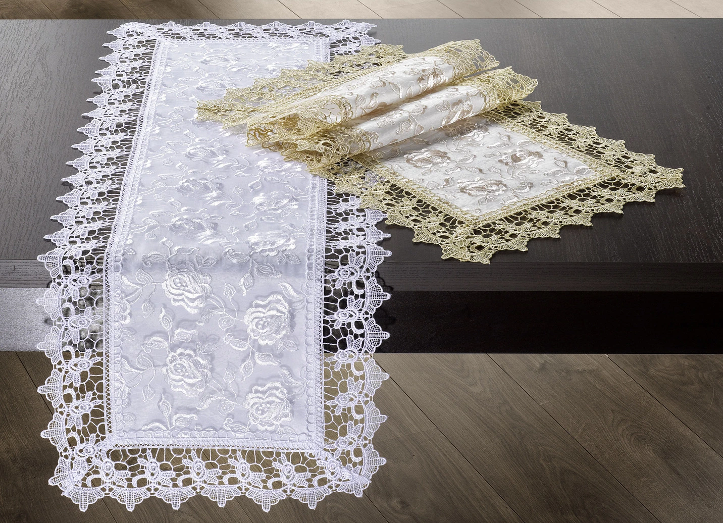 Tisch- und Raumdekoration mit Macramé-Spitzenbordüre