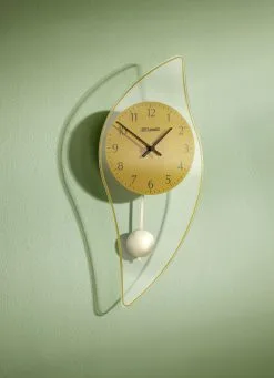 Diese edle Tischuhr wurde aus Holz in toller Form gefertigt. Mit arabischen Ziffern auf dem runden Zifferblatt mit schwarzen Zeigern und goldfarbener Ornamentverzierung in der Mitte.