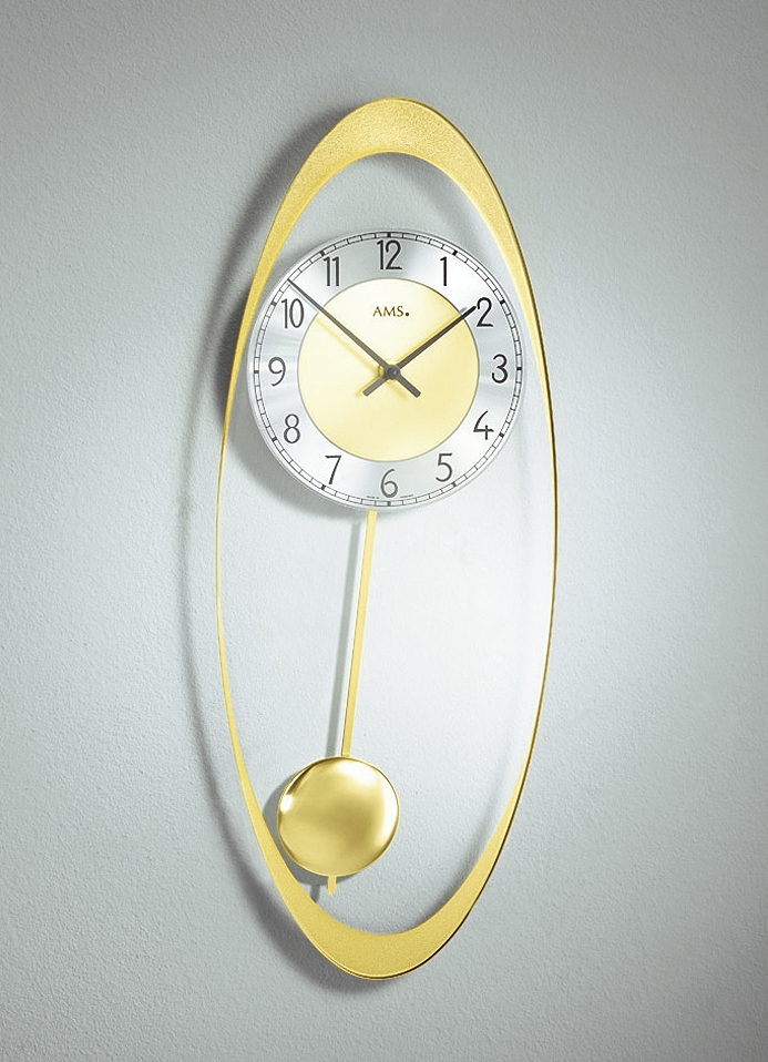 Formschöne, ovale Wanduhr aus hochwertigem Mineralglas. Das Zifferblatt aus Aluminium ist mit arabischen Ziffern und schwarzen Metallzeigern versehen. Mit hochwertigem Quartzwerk sowie Pendel. Hergestellt in Deutschland. Batteriebetrieben mit 1x 1,5 Volt Mignon (nicht im Lieferumfang enthalten).
