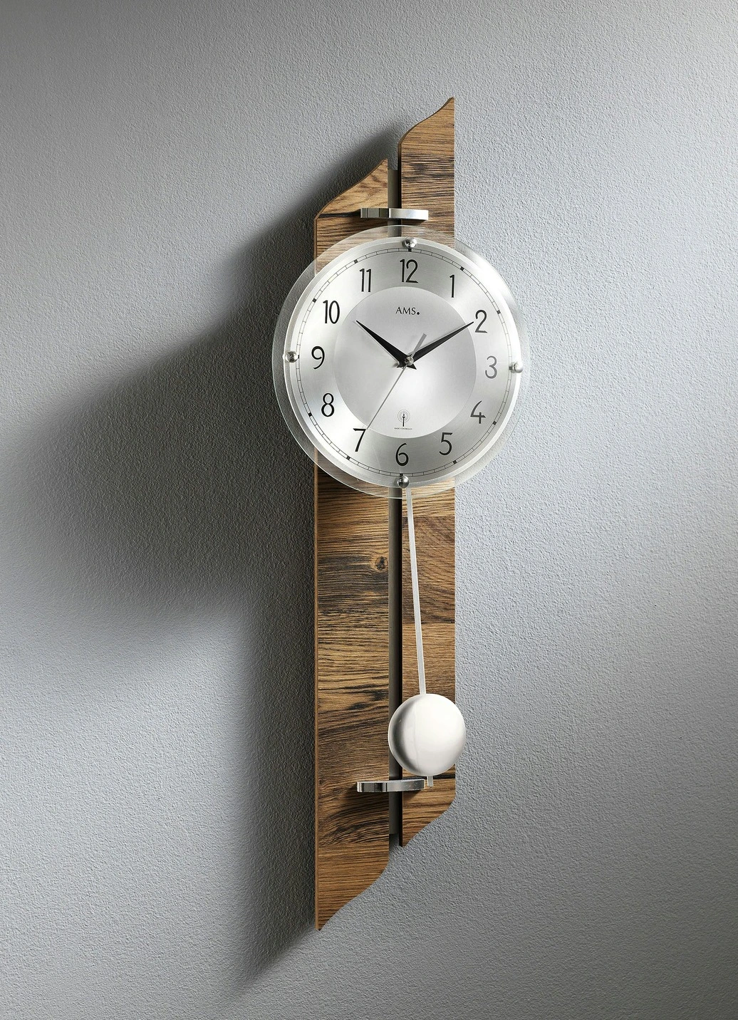 Ein tolles Deko-Objekt ist diese in Deutschland gefertigte Wanduhr! Mit abgeschrägter Rückwand aus Massivholz und chromfarbenen Applikationen. Gewölbtes Mineralglas mit Aluminium-Zifferblatt, arabischen Ziffern und schwarzen Zeigern sowie Metallpendel. Funkuhrwerk, batteriebetrieben mit 2x 1,5 Volt Mignon (nicht im Lieferumfang enthalten).