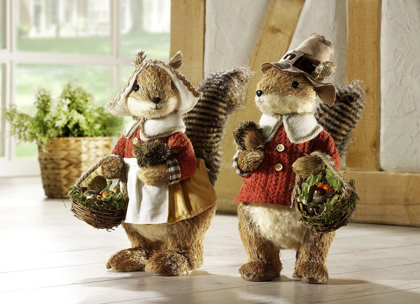 Witzige Eichhörnchen aus Stroh in der Ausführung Eichhörnchenfrau und in Braun.